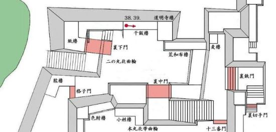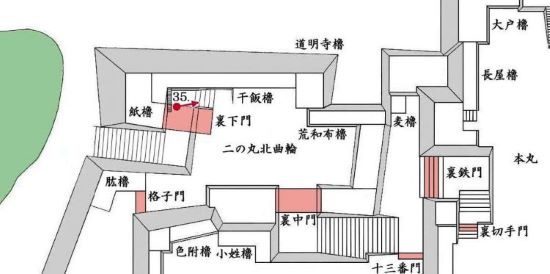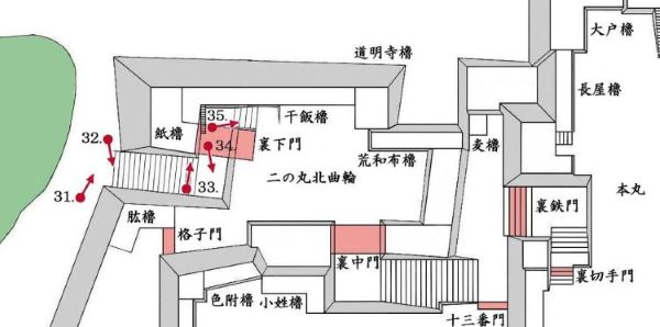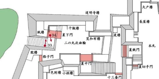 33. 二の丸 紙櫓台 裏下門跡と枡形