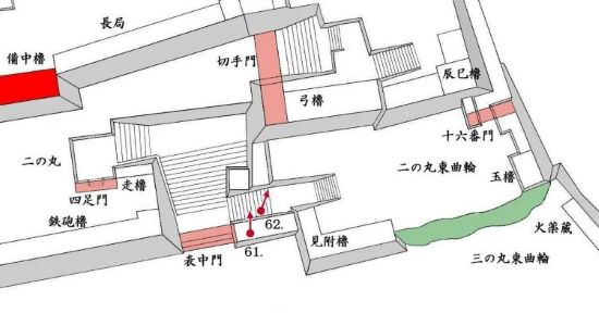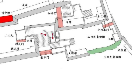 66. 二の丸 東曲輪辰巳櫓台と本丸包(鼓)櫓台・東帯曲輪十四番門跡