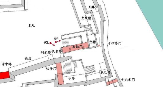 93. 本丸 表鉄櫓門跡南の御殿玄関式台跡・使者櫓台