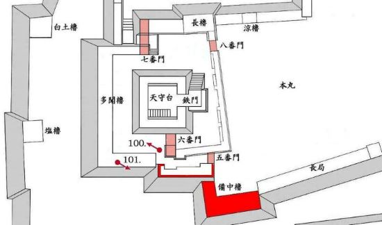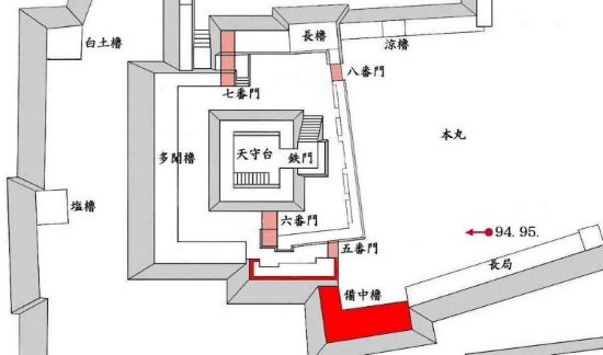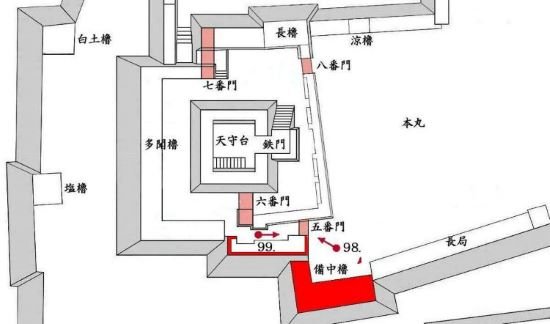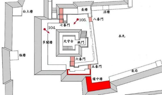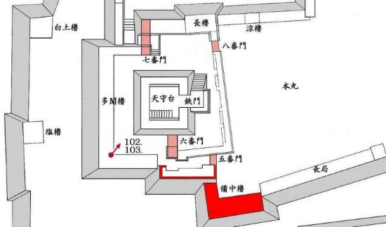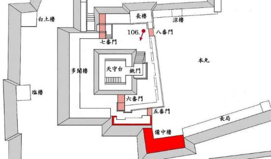 本丸 天守曲輪七番門から八番門周辺
