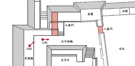 109. 本丸 天守曲輪北 七番門東の長櫓台・正面に八番門跡