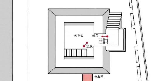 119. 天守曲輪の天守台入口鉄門内 (動画から)