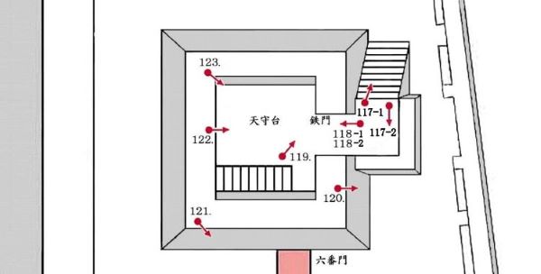 117-2. 天守曲輪の天守台入口鉄門前枡形