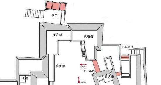 132. 十一番門跡からの粟積櫓台と月見櫓台