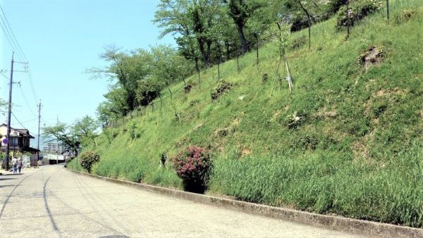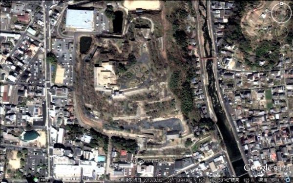 133. 本丸 十一番門跡・月見櫓台と粟積櫓台(改変され道路ができている)