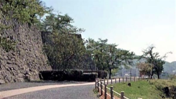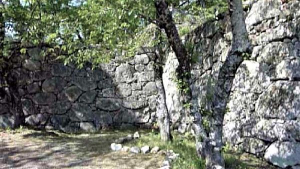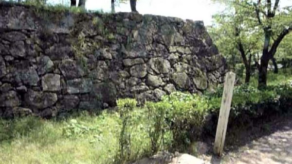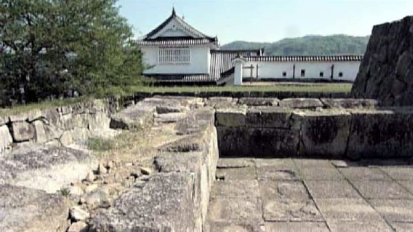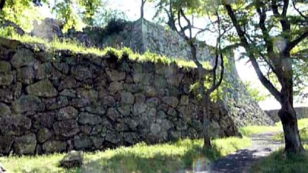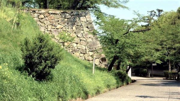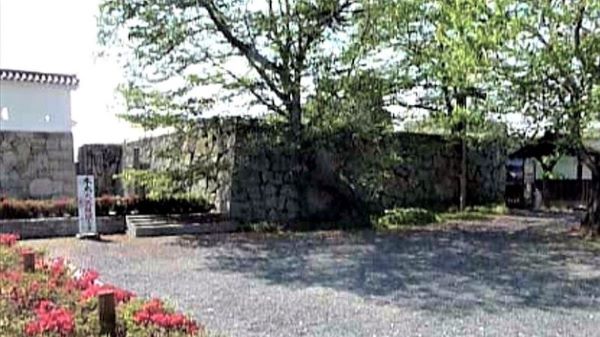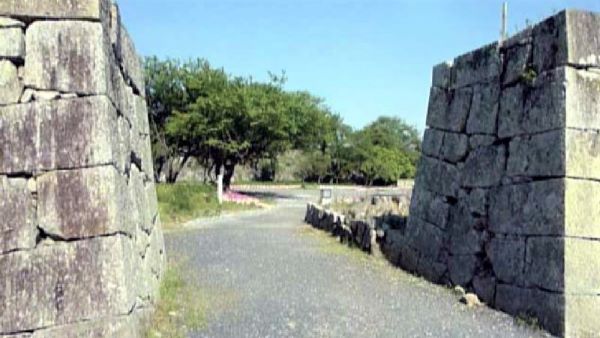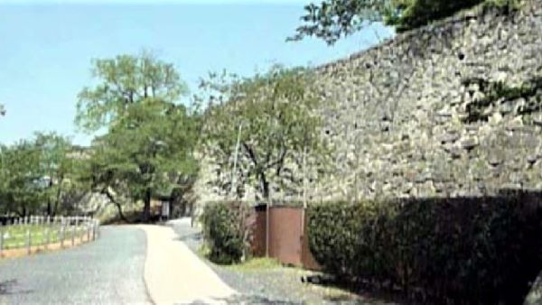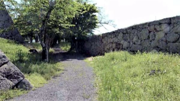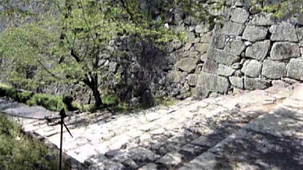 73. 二の丸 切手門跡と右に弓櫓台北面石垣 (動画から)