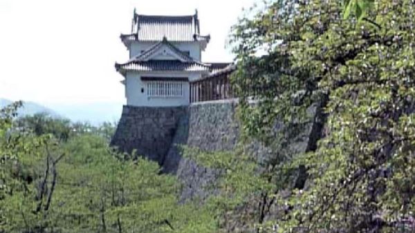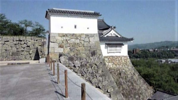 86. 本丸南面石垣と備中櫓台(復元) (動画から)