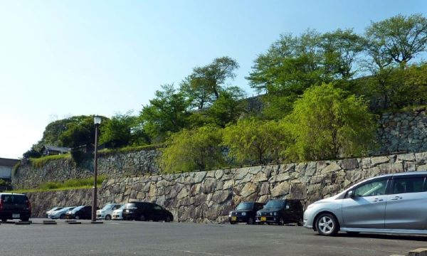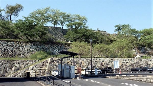 139. 十二番門跡からの本丸粟積櫓台(櫓台前の石垣が無くなり道路ができている)