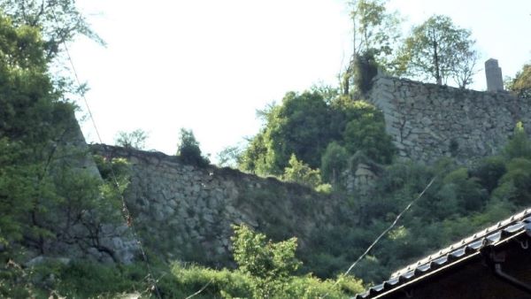 141. 大戸櫓台下の桜門跡をと粟積櫓台上から見る