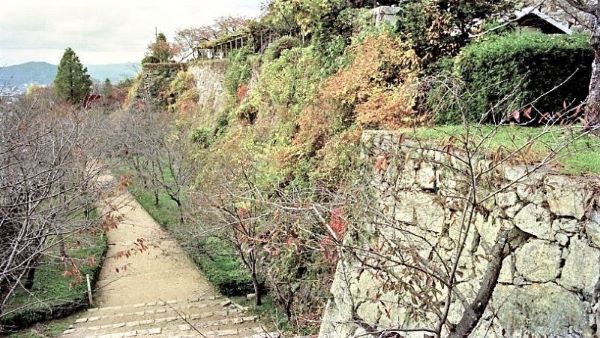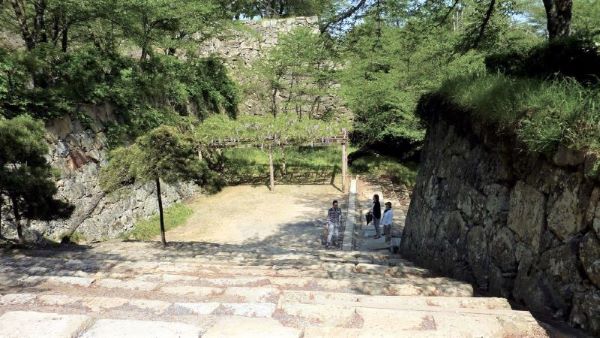 34. 二の丸 裏下門跡への石段 奥に本丸北帯曲輪の色附櫓台