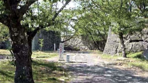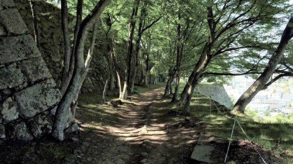 45-1. 本丸北帯曲輪 裏中門内跡 奥に本丸 腰巻櫓台 (動画から)