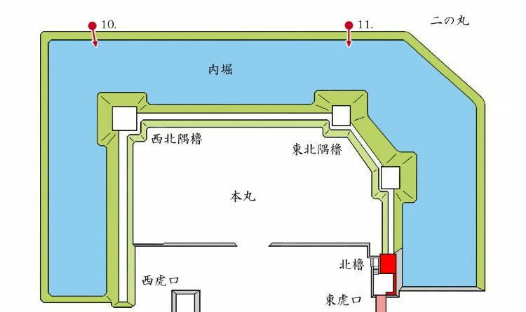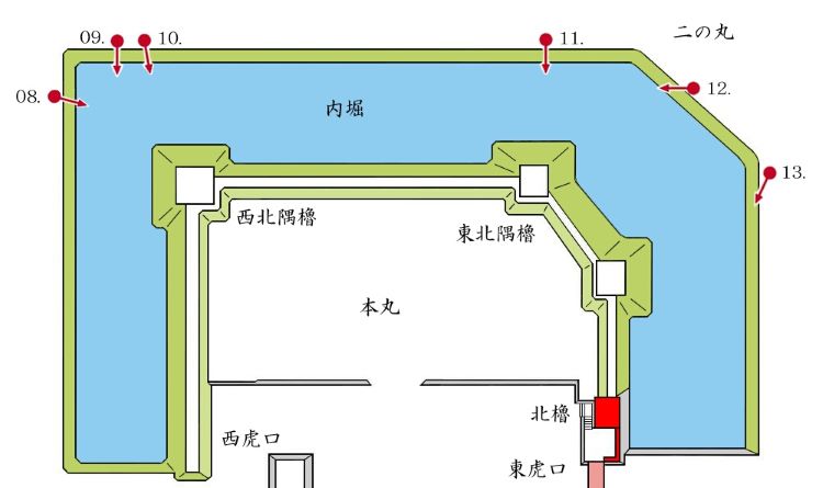 12-1. 本丸 東北櫓台と内堀北面 (2012年)