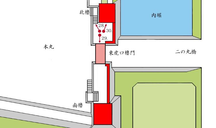 28. 本丸内 東虎口櫓門下石垣と南櫓 (2012年)
