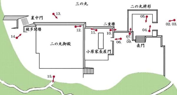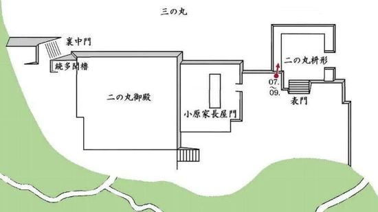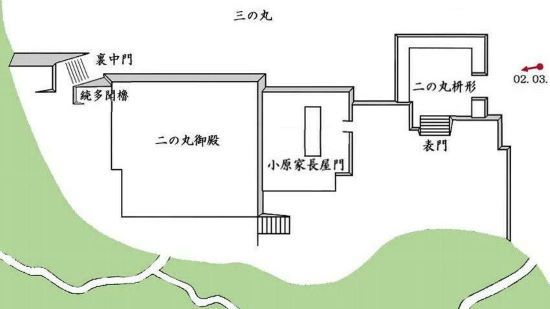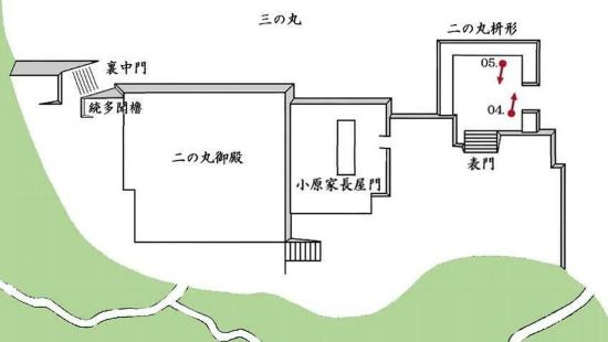 05. 二の丸枡形内より表門跡と右に二重櫓台