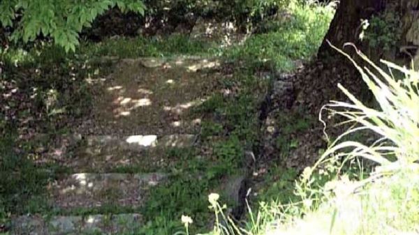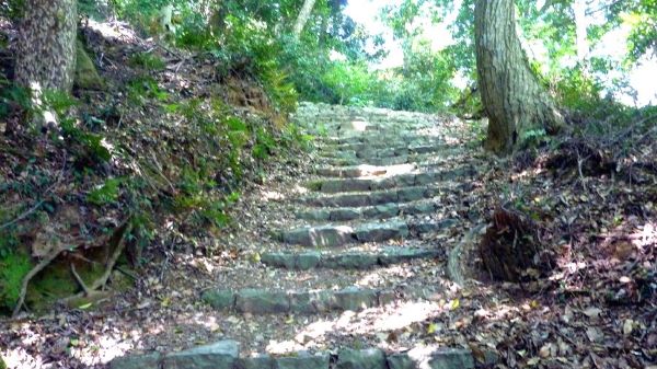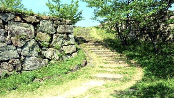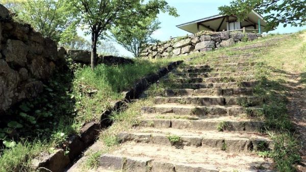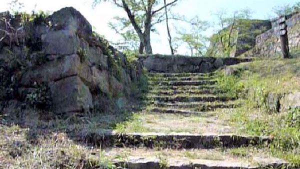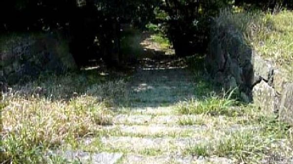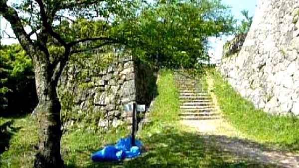 31. 番所曲輪隅櫓台の南門虎口跡から三の丸への石段 (動画から)
