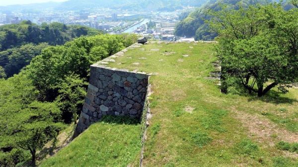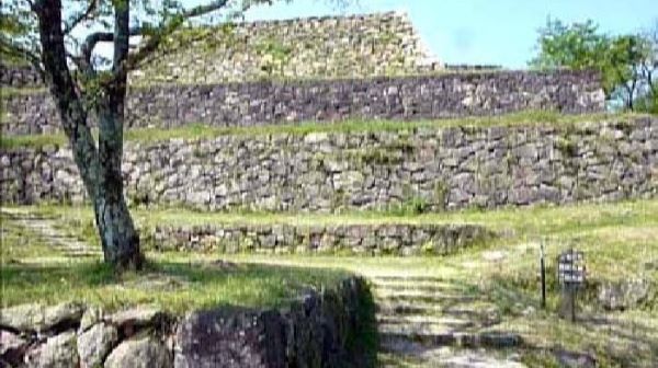24. 北門曲輪虎口跡からの本丸大・小天守台と三段石垣 (動画から)