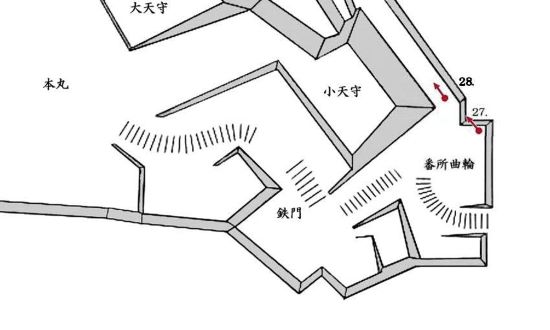 26-2. 番所曲輪から本丸鉄門への石段と右に小天守台