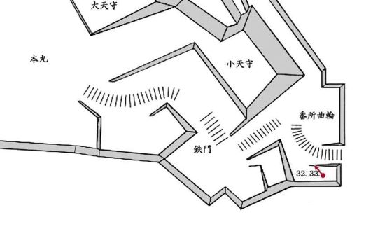 32. 番所曲輪から本丸鉄門跡への石段と小天守台