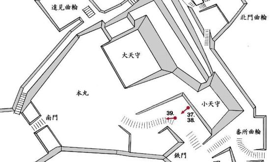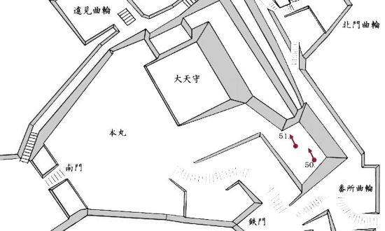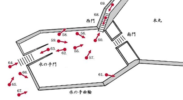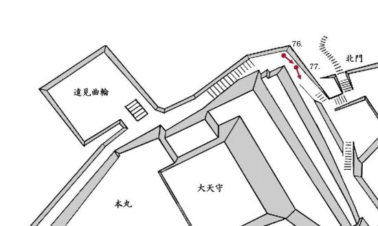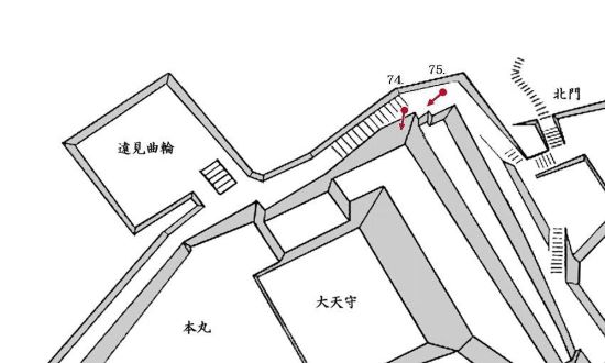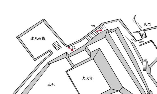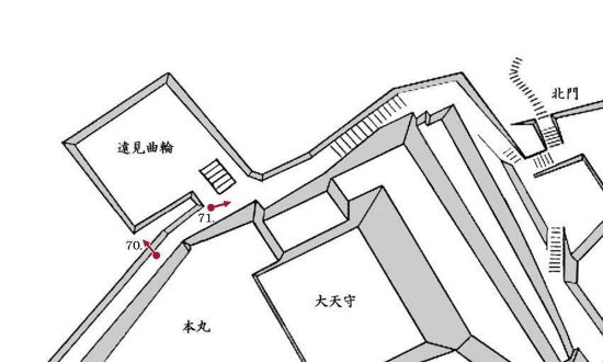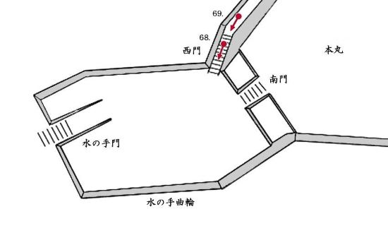 69. 本丸西門虎口と南門櫓門跡