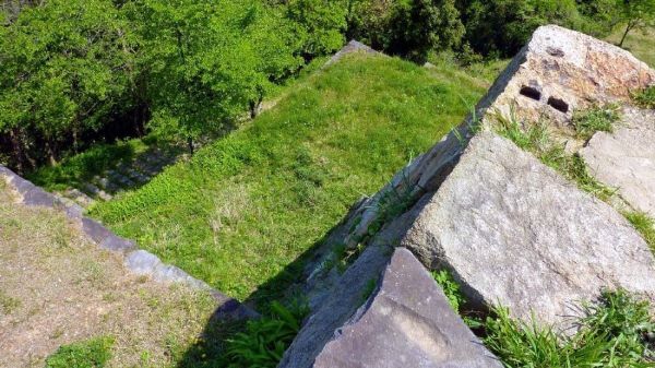 70-1. 本丸西北面石垣下からの遠見曲輪遠見櫓台