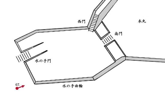 68. 本丸北面石垣下からの水の手曲輪 西門虎口跡