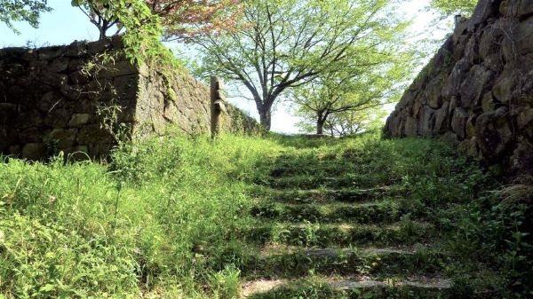16. 二の丸裏中門跡より本丸・内膳丸への登り道 (動画から)