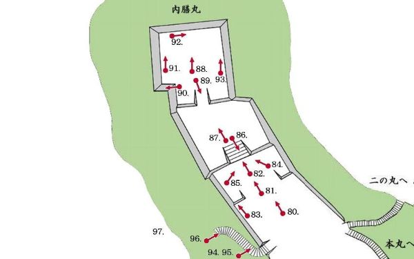 15. 二の丸裏中門跡より本丸・内膳丸への登山道