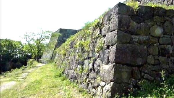 60. 水の手曲輪西門虎口跡からの本丸北面石垣 (動画から)